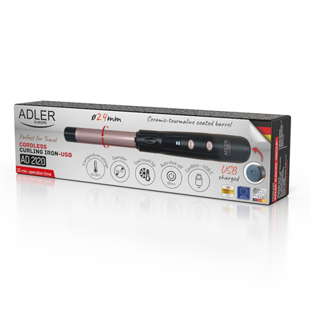 Adler Cordless Curling Iron | AD 2120 | Temperature (min) 170 °C | Display LED | Black/Rose Gold