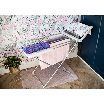 Inne funkcje: Dimensions when unfolded: 148 x 52.5 x 90 cm; Folded dimensions: 113 x 52.5 x 8 cm; The heating element is an electric heater built into all tubes; Plastic feet to protect the floor; Reduces drying time compared to traditional method; Power cord length: 2m