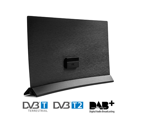 Ta antena wewnętrzna jest kompatybilna z programami DVB-T / T2 nadawanymi w jakości Full HD.
