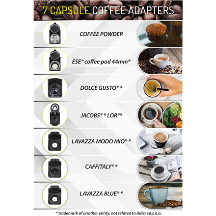 Inne funkcje: 9 types of coffee in one machine