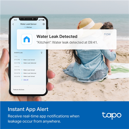 Czujnik reaguje na kapanie i wyciek wody za pomocą 6 sond, a w razie zagrożenia, urządzenie natychmiast poinformuje Cię o tym za pomocą syreny alarmowej o głośności 90 dB. Czujnik może również aktywować alarm w Hubie, aby zwiększyć zasięg alarmu dźwiękowego. Dzięki czujnikowi wycieku wody możesz natychmiast zareagować i zapobiec dużym szkodom spowodowanym przez wodę. Umieść czujnik wycieku wody w miejscu gdzie wyciek wody jest najbardziej prawdopodobny, takim jak łazienka, kuchnia, pralnia i wielu innych. Nazwij czujniki i w prosty sposób zarządzaj nimi wszystkimi z poziomu aplikacji Tapo. Hub Tapo jest wymagany i należy go zakupić osobno.