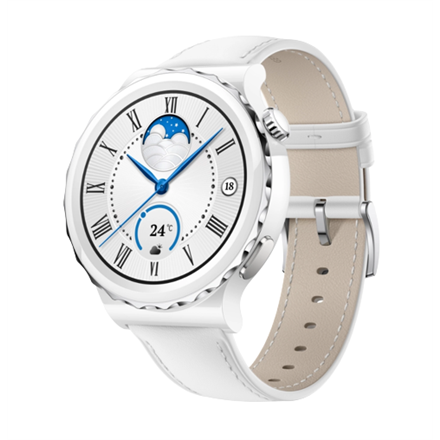 Huawei WATCH GT 3 Pro (43 mm) Smart watch, GPS (satellite), AMOLED, Touchscreen, Heart rate monitor, Activity monitoring 24/7, Waterproof, Bluetooth, White Ceramic Case with White Leather Strap, Frigga-B19V