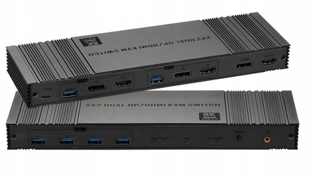 KVM Switch HDMI DP 2x2 KONSOLA PRZEŁĄCZNIK DISPLAYPORT 2 Monitory 4xUSB 3.0