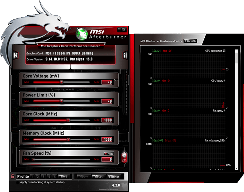 Aplikacja MSI Afterburner jest najbardziej znanym i powszechnie używanym na świecie narzędziem do podkręcania kart graficznych. Oprogramowanie to zapewnia pełną kontrolę nad kartami graficznymi. Jest to także bardzo szczegółowe narzędzie pozwalające zdiagnozować i sprawdzić sprzęt. Wyposażono je również w kilka dodatkowych funkcji, takich jak dostosowanie profili wentylatorów, opcje przydatne przy prowadzeniu testów wydajności oraz możliwość rejestracji nagrań wideo.