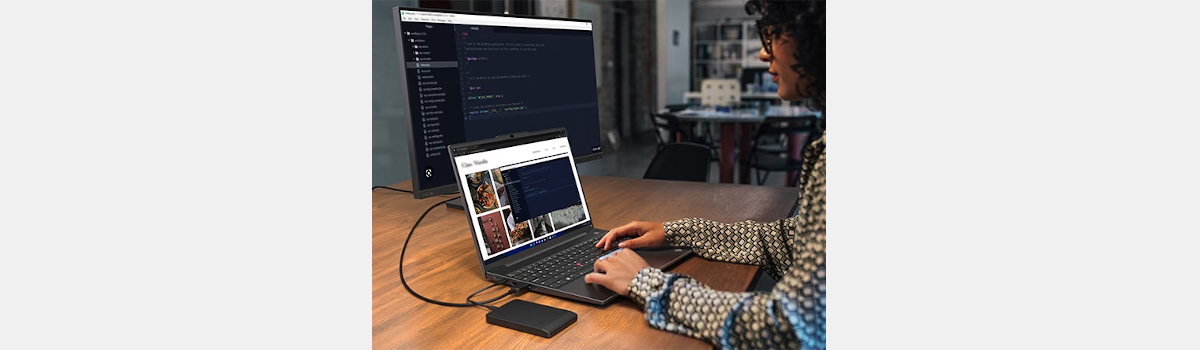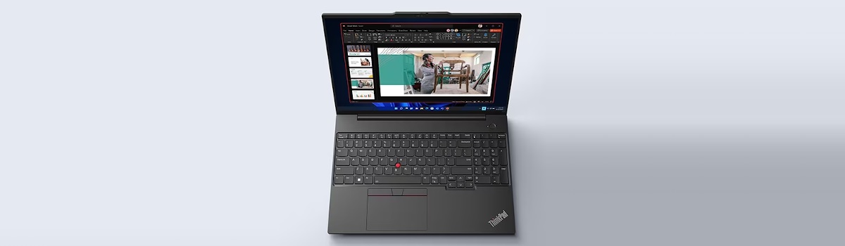 Laptop ThinkPad E16 doskonale sprawdza się w pracy zdalnej dzięki przenośnej konstrukcji i dużej pojemności baterii. Urządzenie zostało przetestowane pod kątem 12 standardów wojskowych i ponad 200 testów kontroli jakości, aby zapewnić jego działanie w ekstremalnych warunkach – od arktycznej dziczy po pustynne burze piaskowe.
