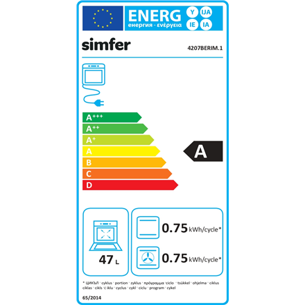 Simfer Oven | 4207BERIM.1 | 47 L | Multifunctional | Manual | Pop-up knobs | Height 54.1 cm | Width 45 cm | Stainless Steel