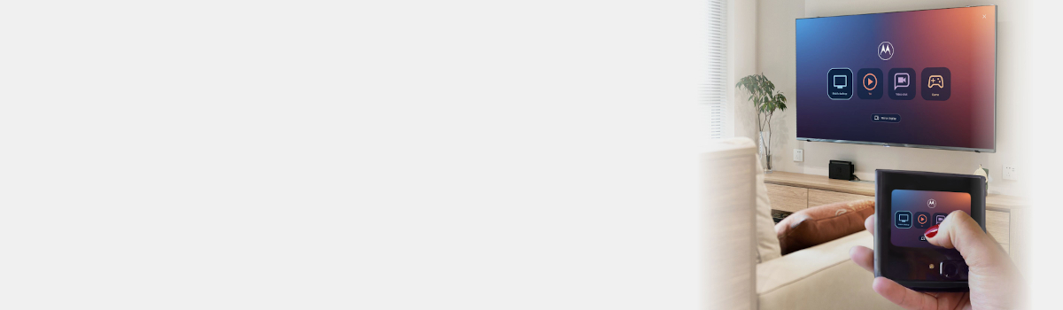 Zwiększ możliwości telefonu na dużym ekranie i uruchom platformę Ready For bez otwierania telefonu. Przenieś wideorozmowy na duży ekran TV i otwórz razr, aby używać głównego aparatu jako kamery internetowej. Możesz też używać aplikacji w telefonie na monitorze zewnętrznym, korzystając z połączenia Bluetooth®.