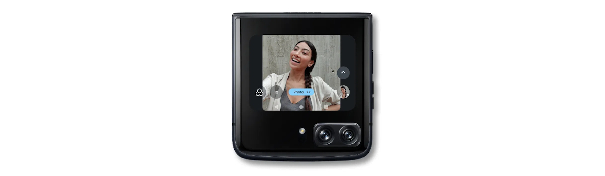 Interaktywny ekran zewnętrzny Quick View pozwala cieszyć się każdą chwilą. Wyświetlaj powiadomienia, nawiązuj połączenia, rób selfie, odpowiadaj na wiadomości, odtwarzaj muzykę, pobieraj wskazówki dojazdu i wiele więcej na ekranie 2,7” OLED — wszystko to bez otwierania telefonu.