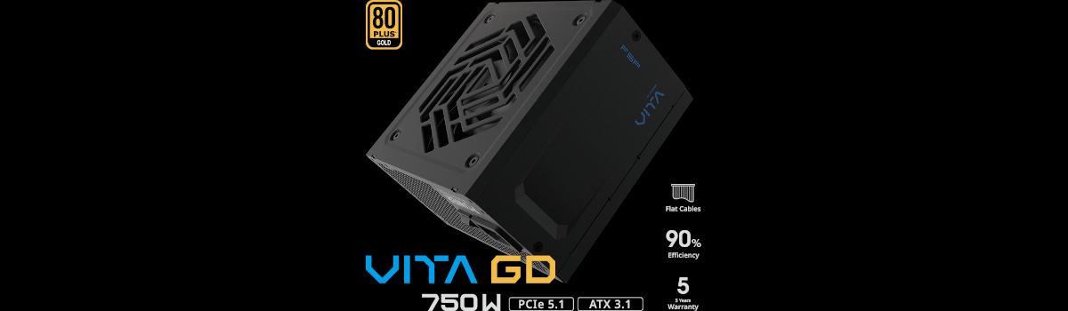 Zasilacz VITA GD 750W to nowoczesna i niezawodna jednostka stworzona z myślą o entuzjastach wydajnych i przyszłościowych konfiguracji. Dzięki zgodności z najnowszymi standardami ATX 3.1 oraz PCIe Gen 5.1, zasilacz obsługuje znaczny wzrost zapotrzebowania na moc, oferując stabilne i bezpieczne działanie nawet w najbardziej wymagających systemach. Złoty certyfikat 80 PLUS® gwarantuje wysoką sprawność na poziomie co najmniej 90% przy typowym obciążeniu, co przekłada się na niższe zużycie energii, mniejsze nagrzewanie i cichszą pracę.