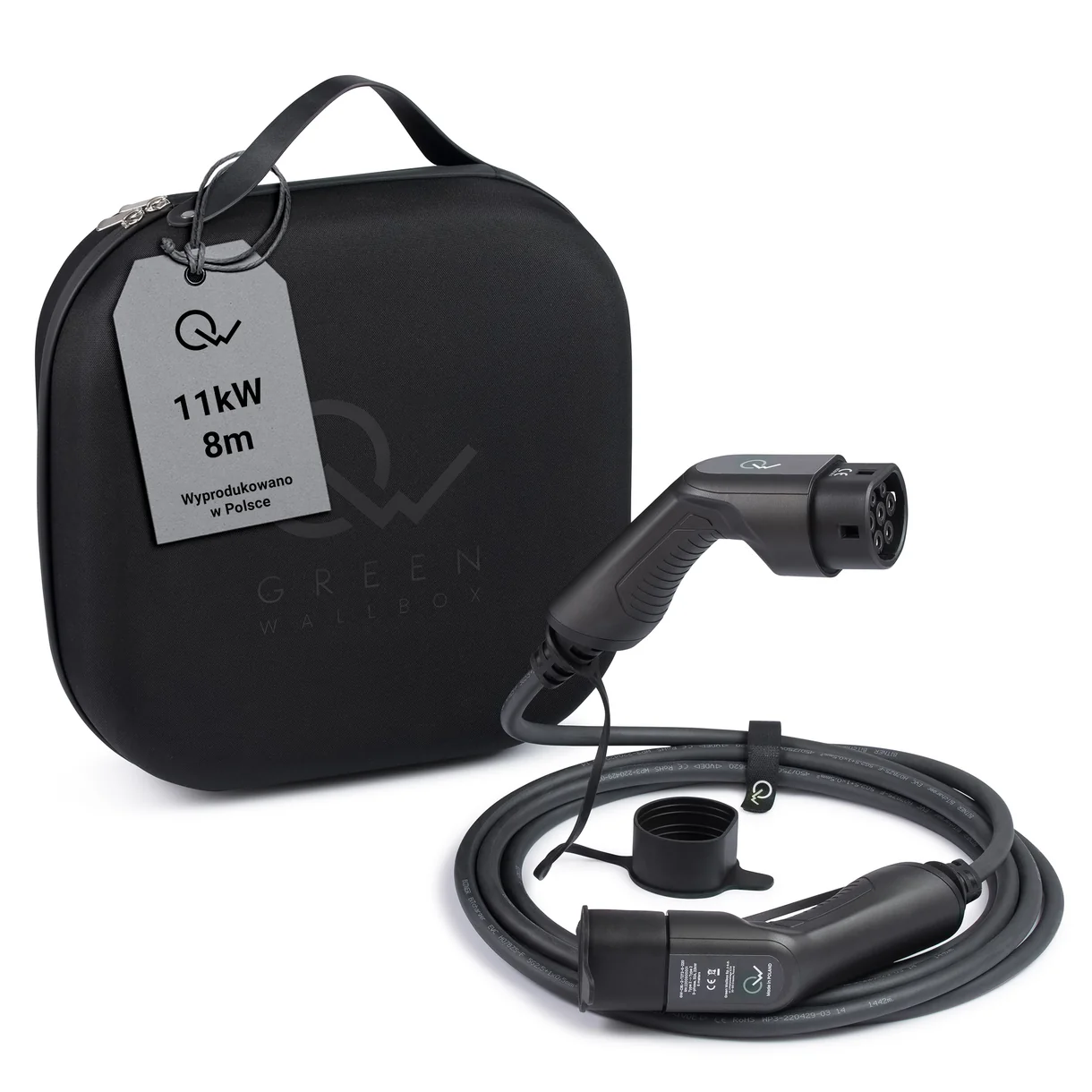 Zielony kabel Wallbox EV typu 2 11kW 8 metrów w twarda pokrowcu