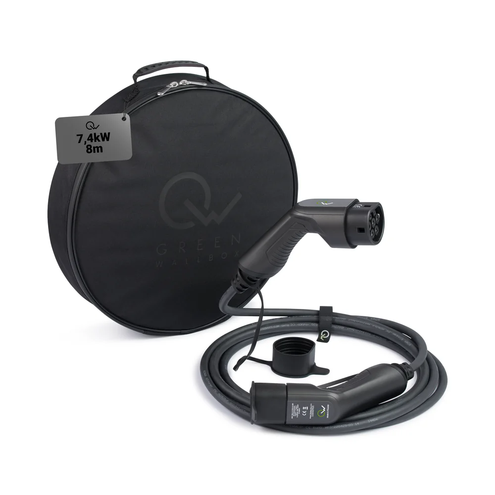 Zielony kabel Wallbox EV typu 2 7,4kW 8 metrów w miękkim pokrowcu